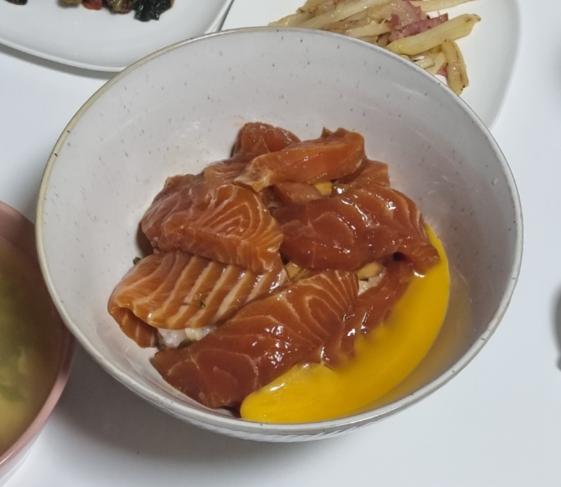 숙성 후에 노른자를 올려서 연어장 덮밥으로 먹어도 좋고,